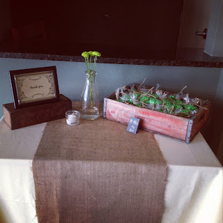 When I got there, my attention was immediately grabbed by one of my favorite wedding items right now: BURLAP! It was everywhere!! The table runners and even the triangle banners (so rustic and cute) were even burlap -- yeah, I was in complete bliss. The flowers Megan picked out went perfectly too -- white hydrangeas and little green, circular wild flowers. You're never going to guess what the vases were either, because then you'll really understand why I was freaking out about the decor... MASON JARS. Yes. Beautiful, simplistic, wonderful Mason jars. Isn't it amazing how something that's been used for years has now surfaced as a popular decorative item? Ok, so maybe my love for Mason jars might not be the healthiest, but... moving on. She also incorporated chalkboards with pretty much everything -- the gift table, her table numbers, and her seating arrangements (with which we are now the owners.. super pumped!!).